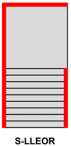 L = Left = Gauche = la rambarde se trouve à gauche de l'escalier extérieur et à gauche du palier et du deuxième escalier extérieur.