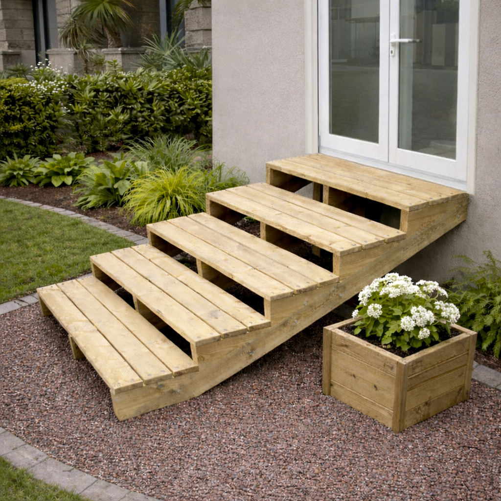 Escaliers en bois vendus en kit : parfaits pour jardins, terrasses et portes d’entrée
