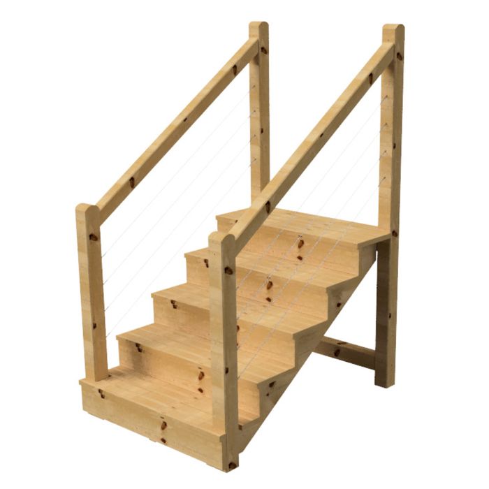 Buitentrap TOKYO 5 treden met trapleuning hout + RVS H88cm